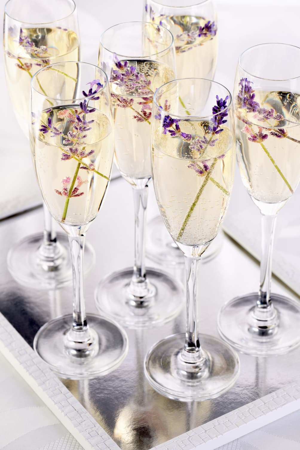 szampan ozdobiony w kieliszku lawendą